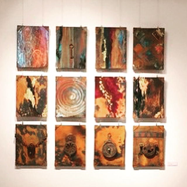 رسم الزمن عليها بريشته الخاصة ( الصدأ ) متوافقة مع احساسي بها وألواني ورؤيتي. تحوي بعضها على قطع نحاسية قديمة ( أنتيك ) مكونة من خلال رمزيتها و اجتماعها على لوحاتي معنى الخلود.